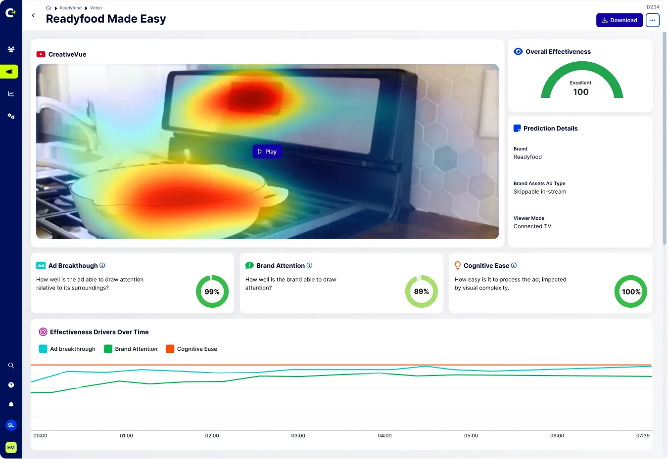 Know what’ll perform before you even spend a single dollar by scoring creative for effectiveness across brand attention, ad breakthrough and cognitive ease.